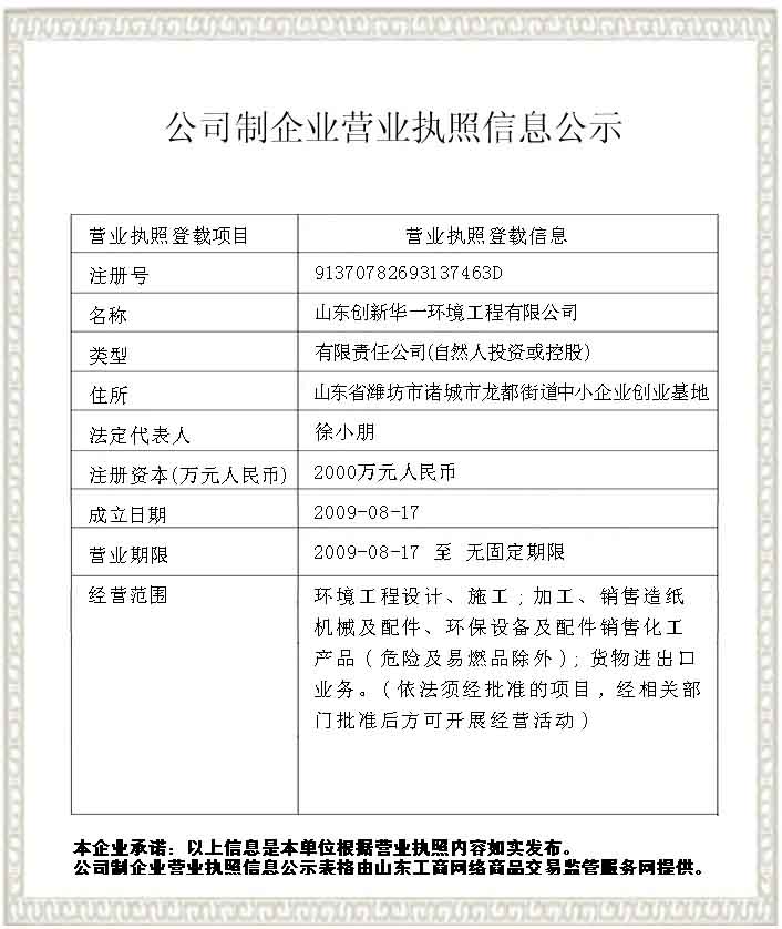 山東創(chuàng)新華一環(huán)境工程有限公司 成立于2009年,注冊(cè)資本2000萬(wàn) 元,是一家集自主研發(fā)、生產(chǎn)制 造、技術(shù)服務(wù)于一體的生產(chǎn)環(huán)保設(shè)備的高新技術(shù)企業(yè),是哈爾濱工業(yè)大學(xué)、青島大學(xué)、青島海洋大學(xué)的戰(zhàn)略合作單位。