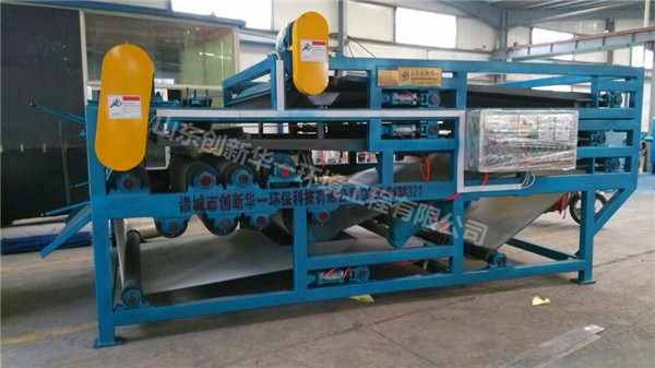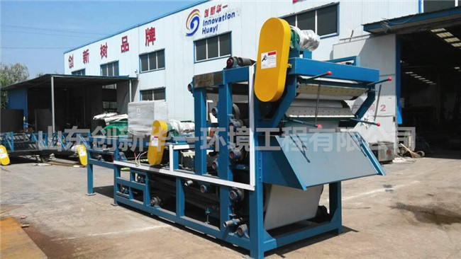 1、采用超長過濾與強(qiáng)力對輥壓榨于一體的脫水方式,處理量大,壓出來的濾餅含水率比普通機(jī)低10%。