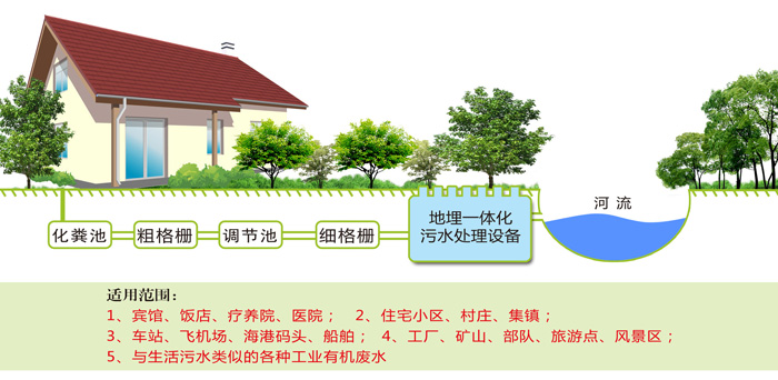 1、社區(qū)污水處理設備埋設于地表以下,設備上面的地表可作為綠化或其他用地,不需要建房及采暖、保溫。處理設備一般用碳鋼和玻璃鋼制作,并進行防腐處理。