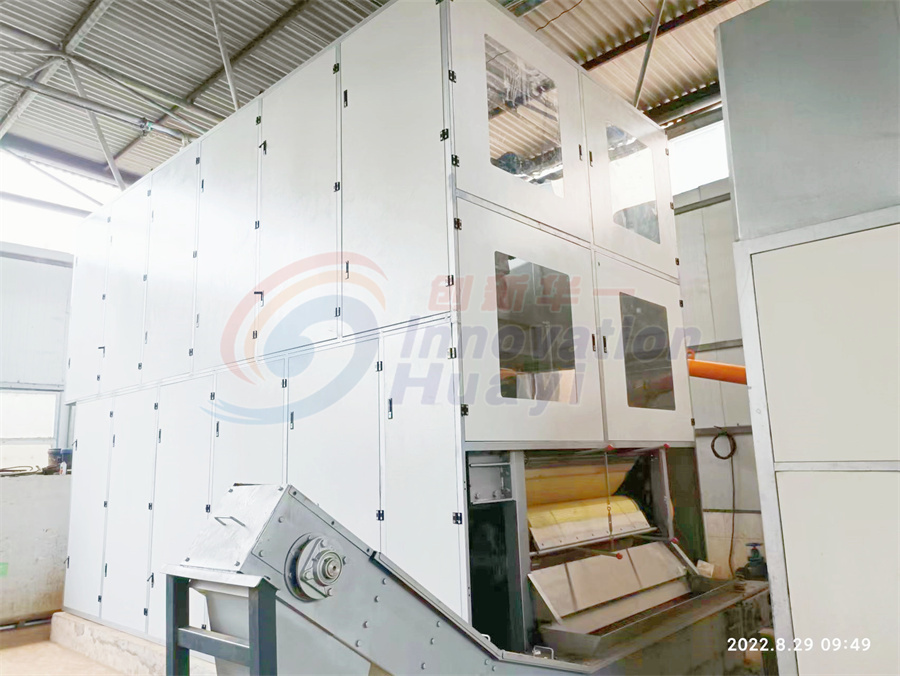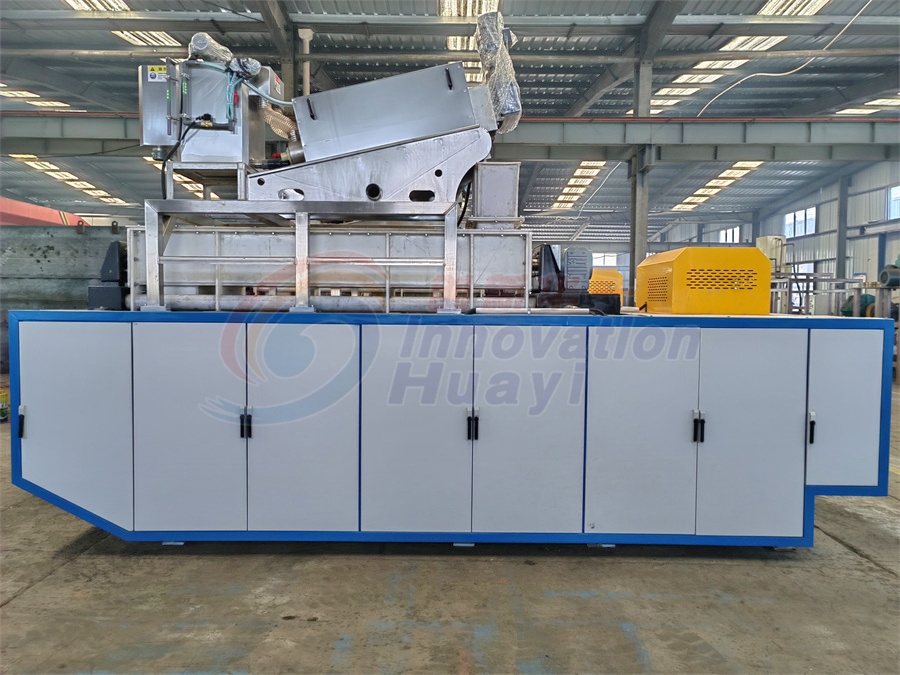 一體式高壓帶式污泥脫水機(jī),可直接處理含水率98%的市政污泥,該設(shè)備濃縮段采用疊螺脫水機(jī),處理后污泥含水率85%左右進(jìn)入雙螺旋混合器,污泥和破壁劑在雙螺旋混合器內(nèi)充分混合后進(jìn)入2級(jí)污泥布料器,經(jīng)過14根呈S型分布的高壓擠壓輥處理后,污泥含水率可以降至70%以下,也可通過添加少量石灰將含水率降至60%以下。
