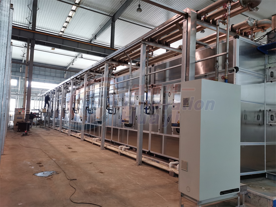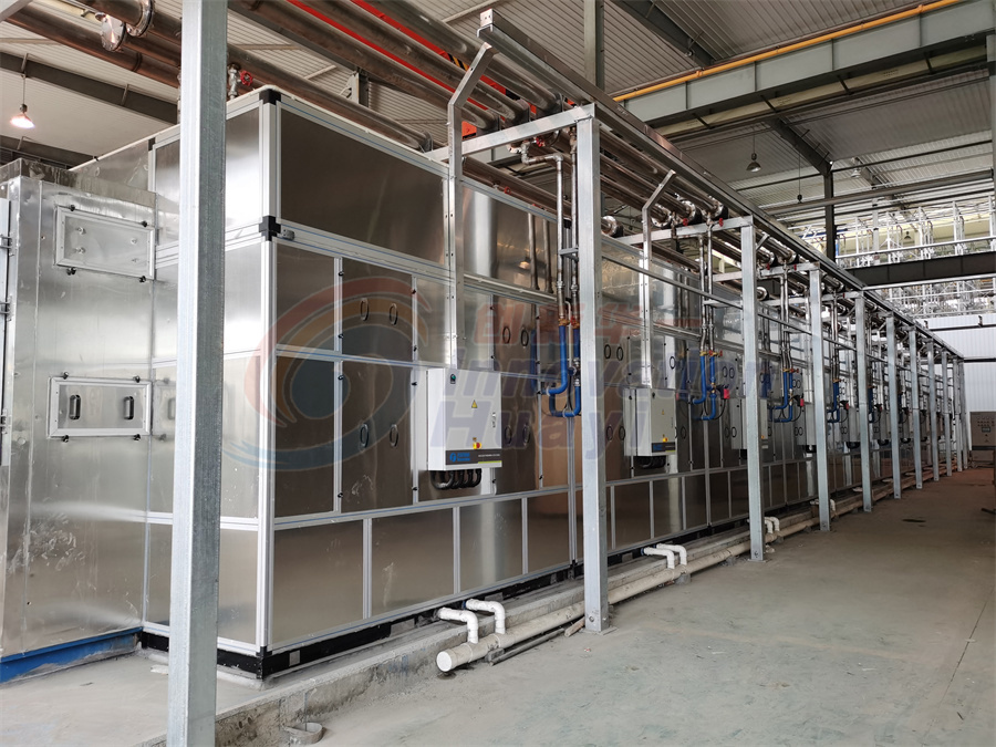 利用熱泵系統(tǒng),將來自干化腔體內(nèi)的濕空氣經(jīng)過蒸發(fā)器進行降溫脫濕處理,同時通過冷凝器進行升溫再熱,加熱成干燥的熱空氣送入干化腔體內(nèi),如此反復(fù)循環(huán),將污泥中的水份通過冷凝水排放到污水池中。