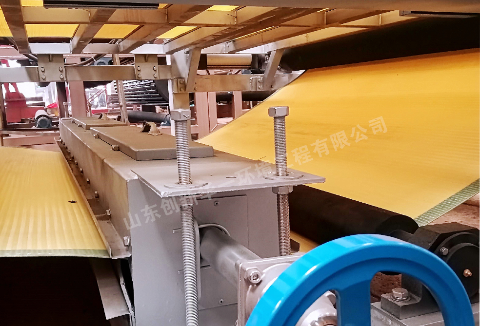 該設備是我公司在傳統(tǒng)帶式壓濾機基礎上,研發(fā)生產(chǎn)的全新一代污泥深度脫水機。設備增加了液壓裝置、污泥布料裝置,優(yōu)化了調(diào)偏裝置、沖洗裝置和軸承座。新型超高壓帶式污泥脫水機脫水能力更強,可以在不添加或者少添加輔料的情況下,將污泥含水率降至60%以下。