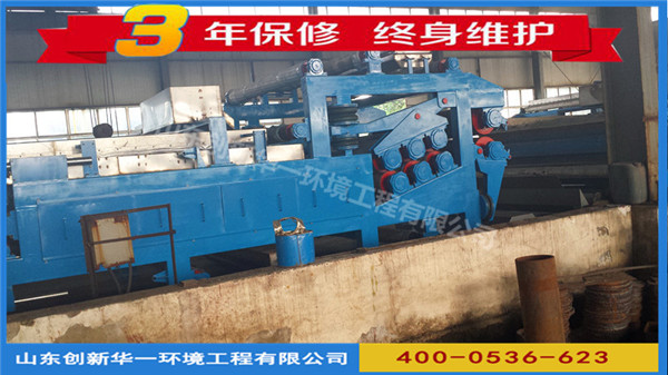 1、采用超長(zhǎng)過濾與強(qiáng)力對(duì)輥壓榨于一體的脫水方式,處理量大,壓出來的濾餅含水率比普通機(jī)低10%。