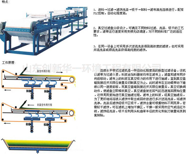 真空帶式過濾機(jī)廣泛應(yīng)用于冶金、礦山、化工、造紙、制藥、食品、電廠濕法煙氣脫硫、煤化工及環(huán)保等行業(yè)。(我公司還生產(chǎn)帶式壓濾機(jī),板框壓濾機(jī)等,具體設(shè)備的選擇我們將根據(jù)不同的物料確定。)